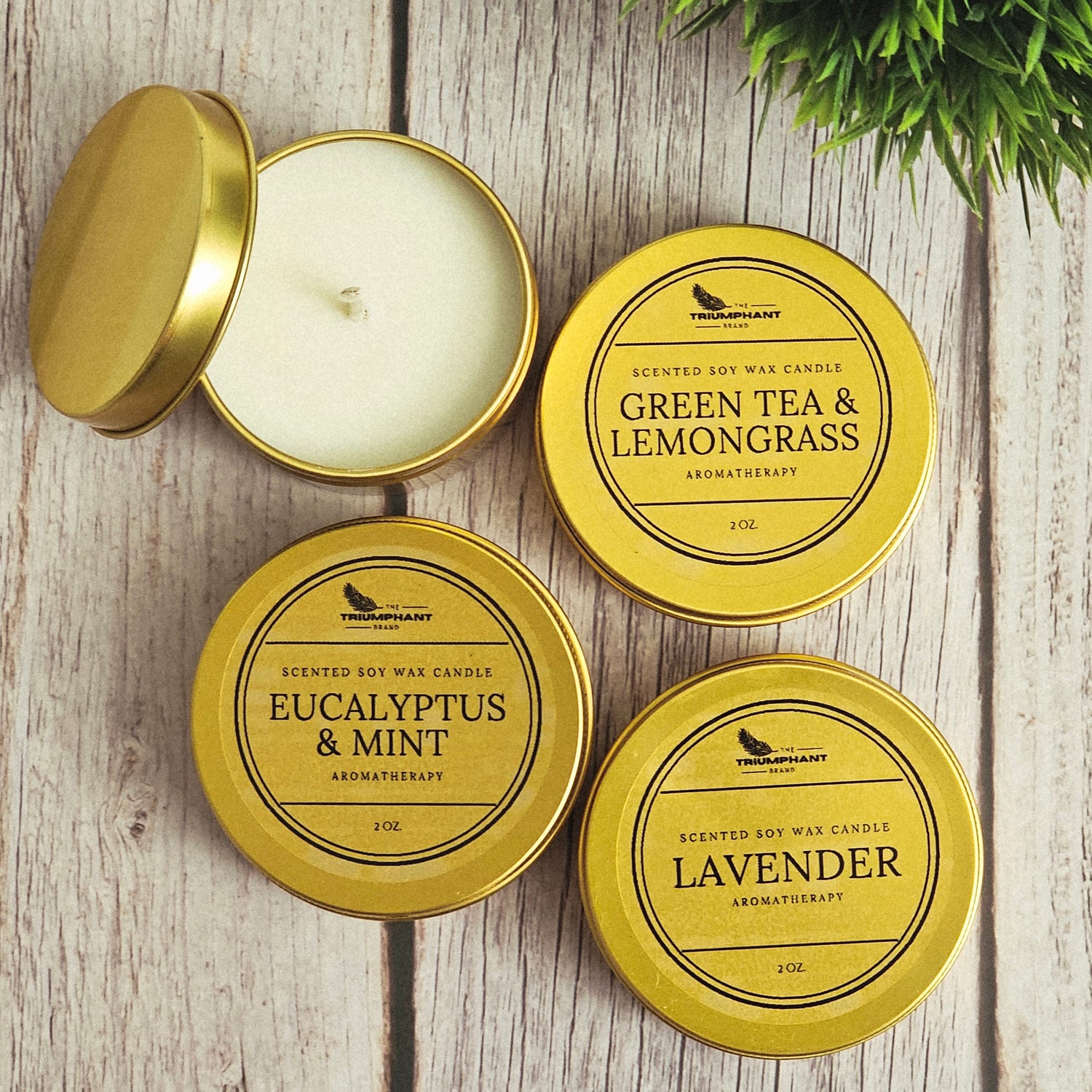 Enhance your surroundings with our Hand-Poured Scented Soy Candles. Immerse yourself in the delightful aromas of lavender, eucalyptus, mint, and green tea paired with lemongrass.