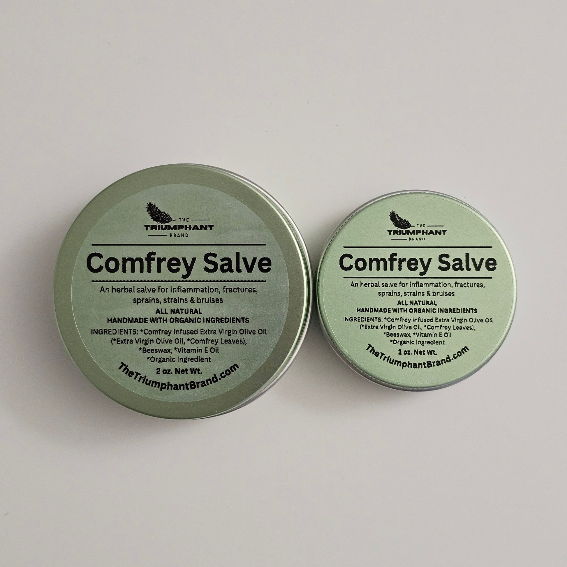 Discover the soothing power of our Comfrey Salve, carefully handcrafted using organic ingredients. This salve is designed to provide anti-inflammatory and pain-relieving benefits that may help ease discomfort from sprains, strains, and bruises.