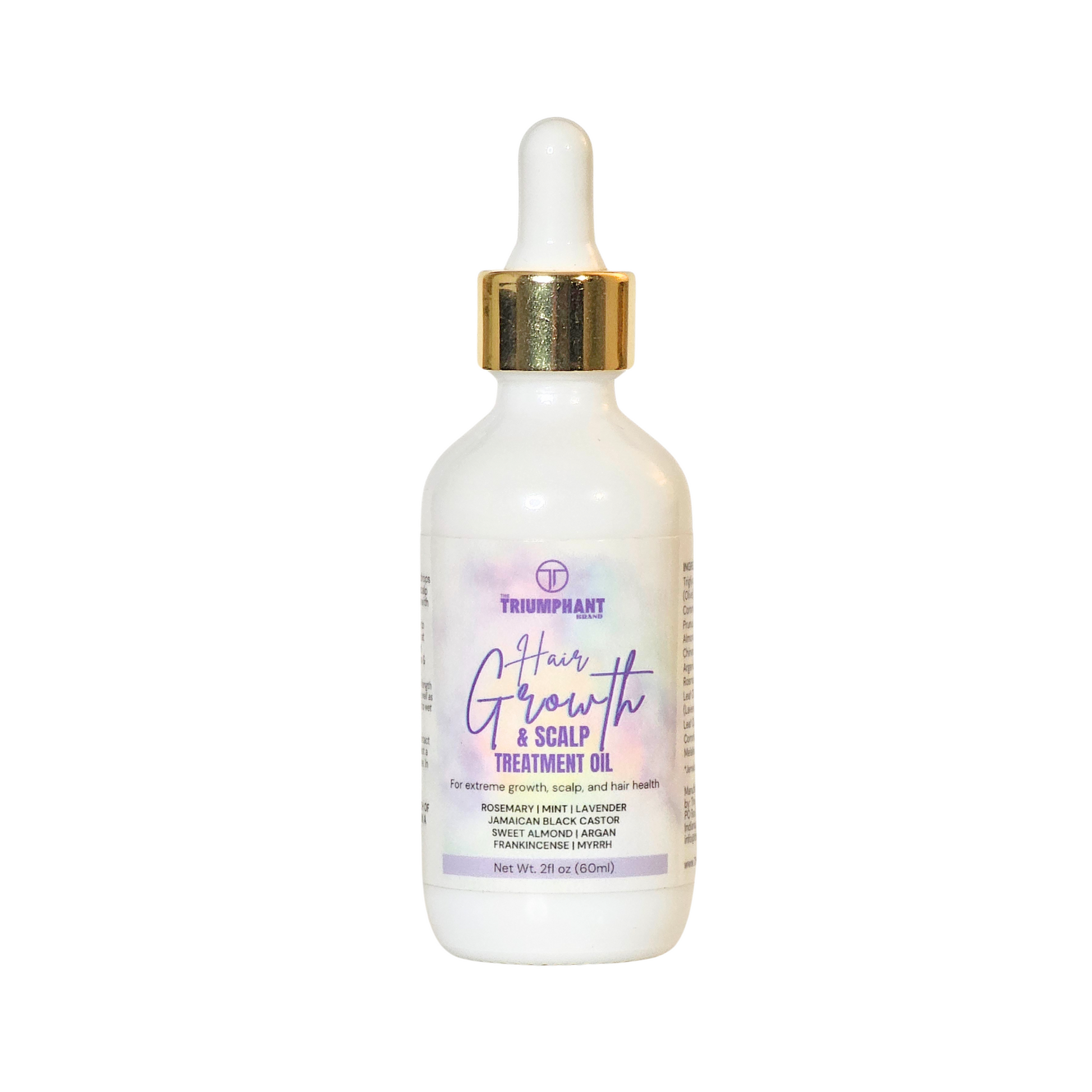 Our oil features a blend of enriching natural oils, including coconut oil, Jamaican black castor oil, jojoba oil, olive oil, sweet almond oil, and argan oil. Each ingredient is chosen for its unique ability to promote hair growth and thickness, achieving a fuller and healthier look. Infused with rosemary, lavender, mint, frankincense, myrrh, and niaouli, this formula not only strengthens your hair but also offers a soothing, aromatic experience.